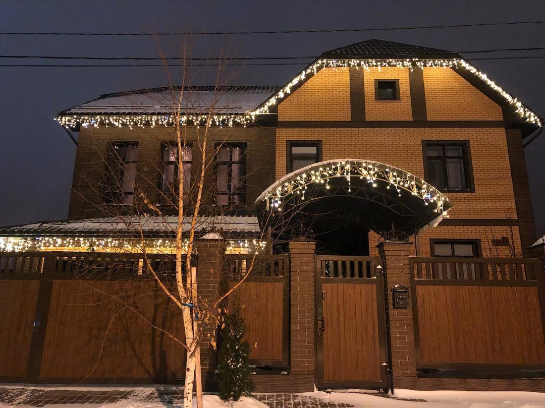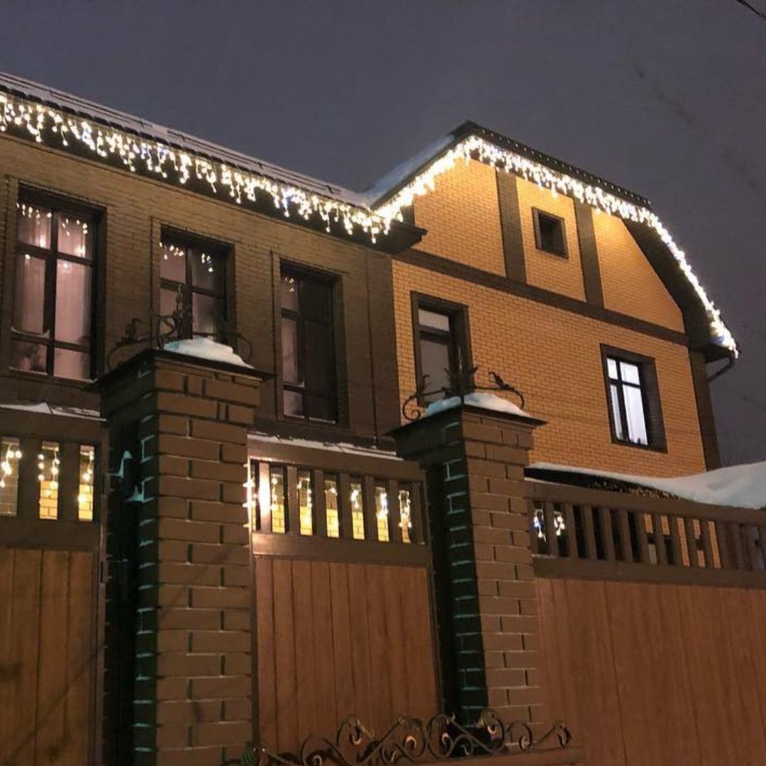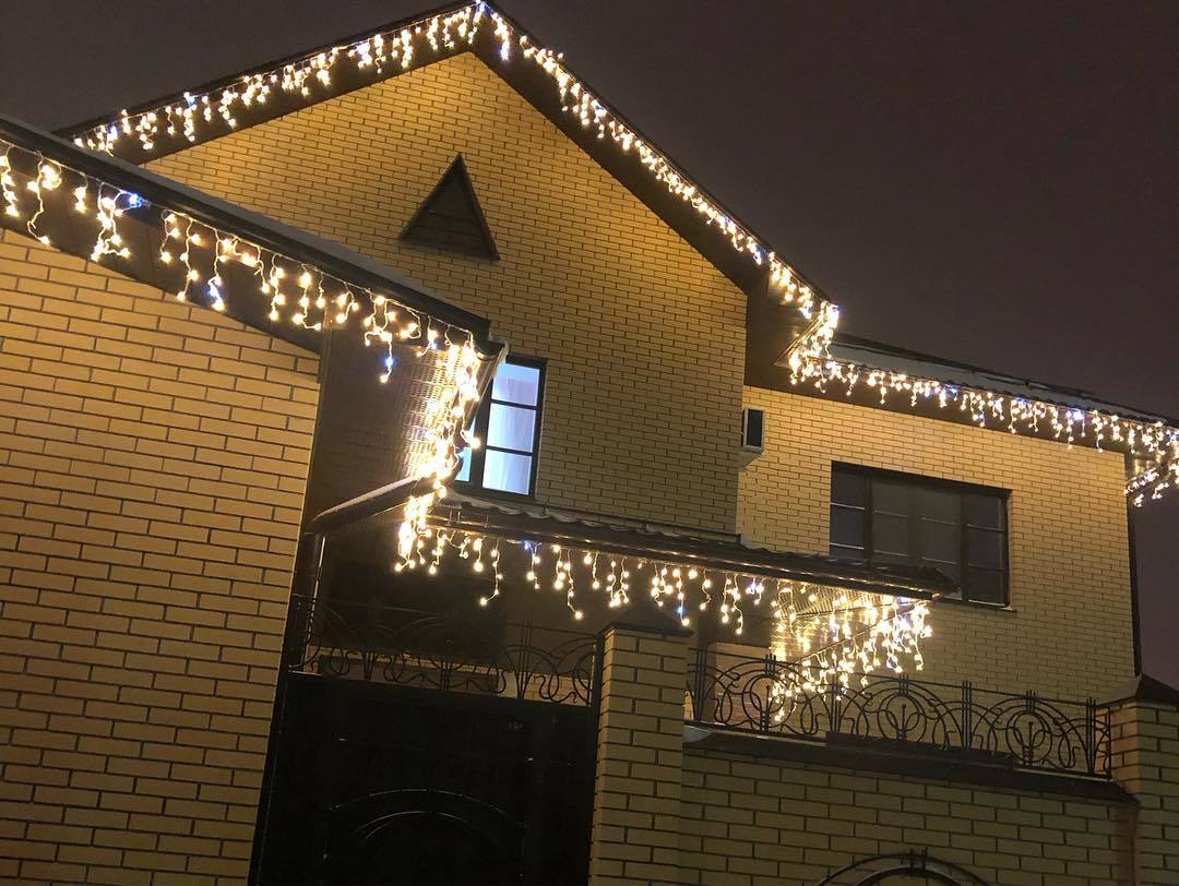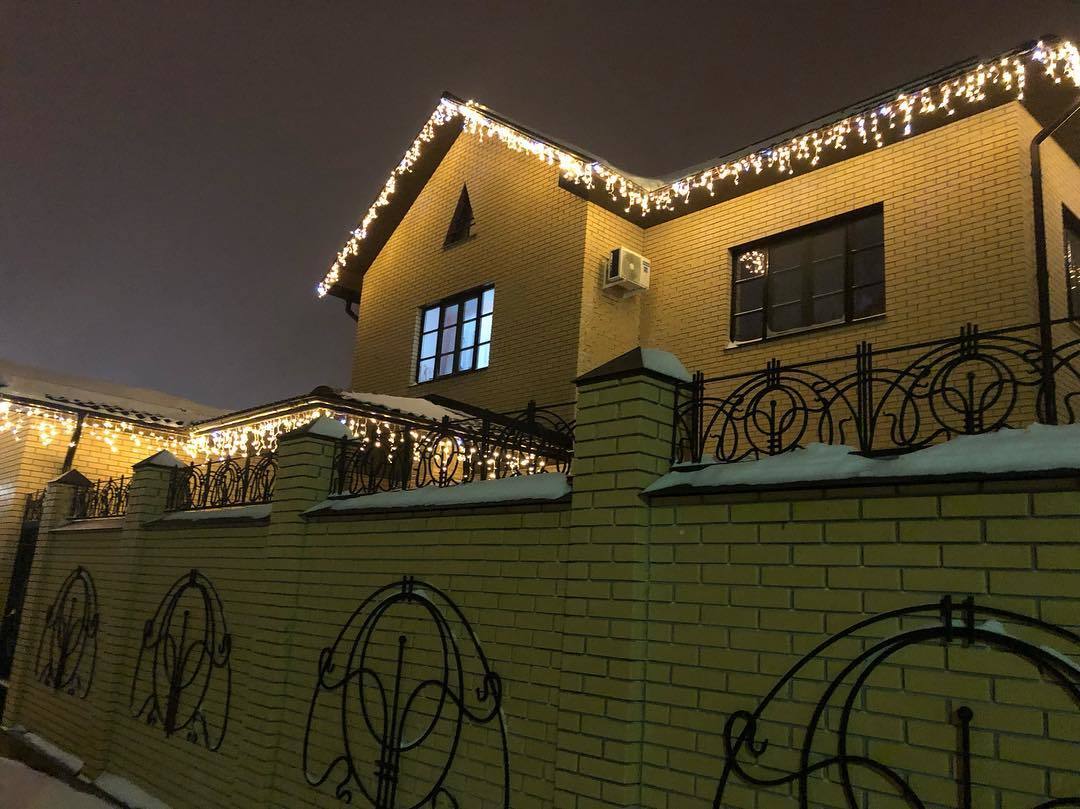 Бахрома и гирлянды крепятся прищепками не нанося вред конструкциям дома. В особых случаях освещение крепится физически к конструкциям, но такие случаи заранее согласовываются с вами.