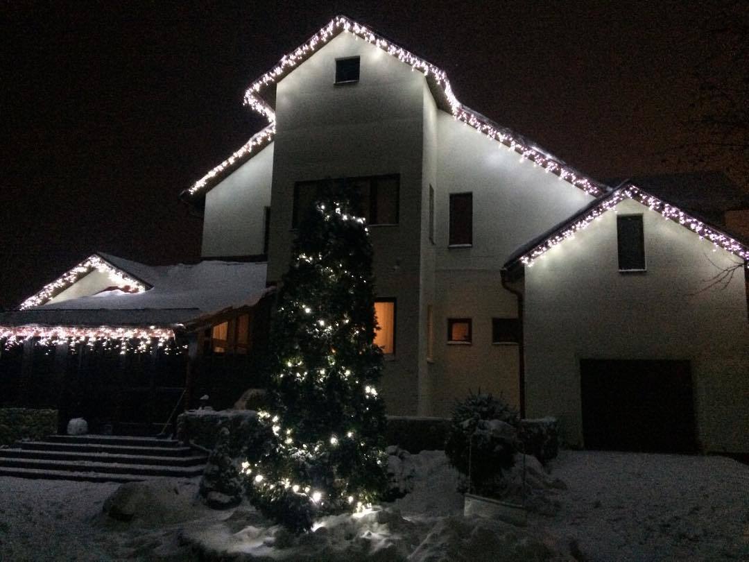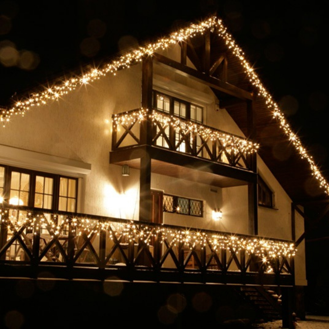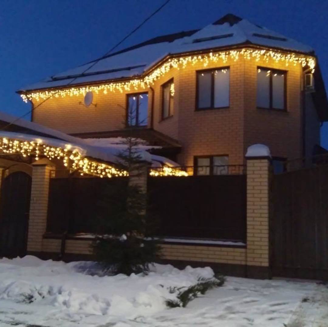 Бахрома и гирлянды крепятся прищепками не нанося вред конструкциям дома. В особых случаях освещение крепится физически к конструкциям, но такие случаи заранее согласовываются с вами.
