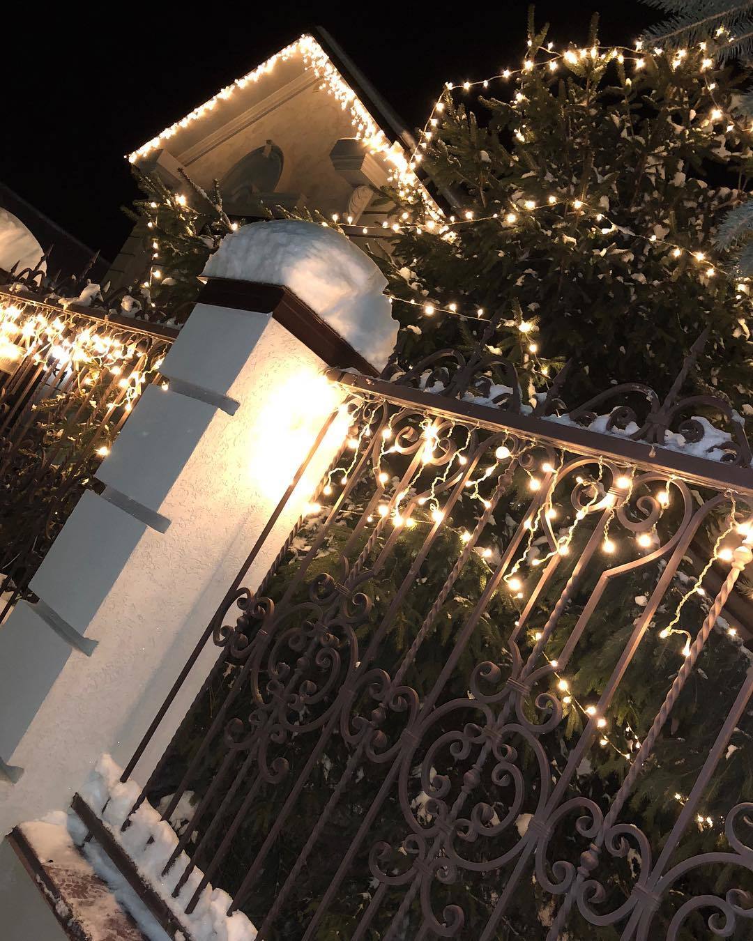 Подчеркните с помощью новогоднего освещения карниз, колонну, ворота, ёлку-холодным или тёплым свечением